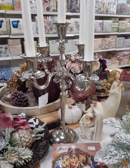Kovový - alumin. svietnik v lesklej chrómovej farbe s piatimi ramenami. Svietnik pre päť sviečok.