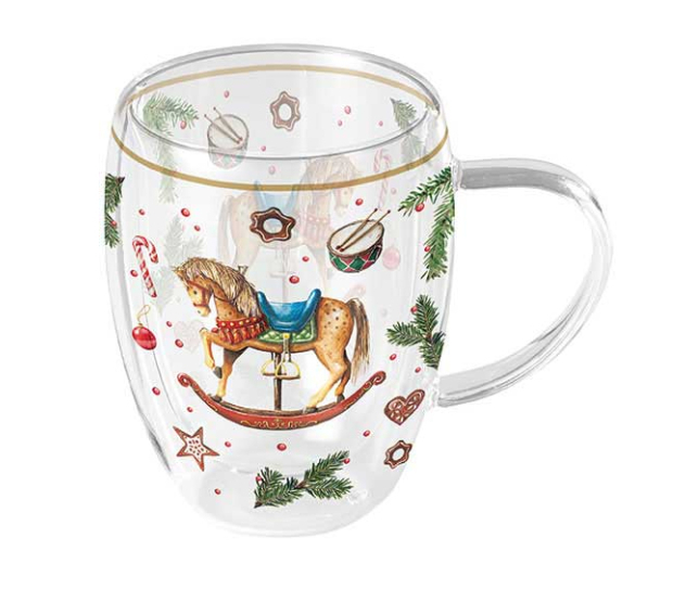 Vianočná luxusná šálka z dvojitého skla 0,2 l s Ø 8,5 - V 11 cm.