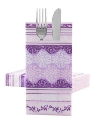 Luxusné púzdra - príborníky na príbor 40 x 40 z Linclass - Airlaid = moderná náhrada textilu. Je to vlastne obrúsok preložený na polovicu s otvorom na príbor. MOC je za jedno balenie = 12 ks.