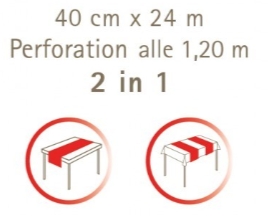 Luxusná šerpa z Airlaid - Linclass - netkaný textil 24 m x 40 cm. Nenápadne perforovaná každých 120 cm. MOC je za 1 kotúč. V 1 kartóne = 4 ks.