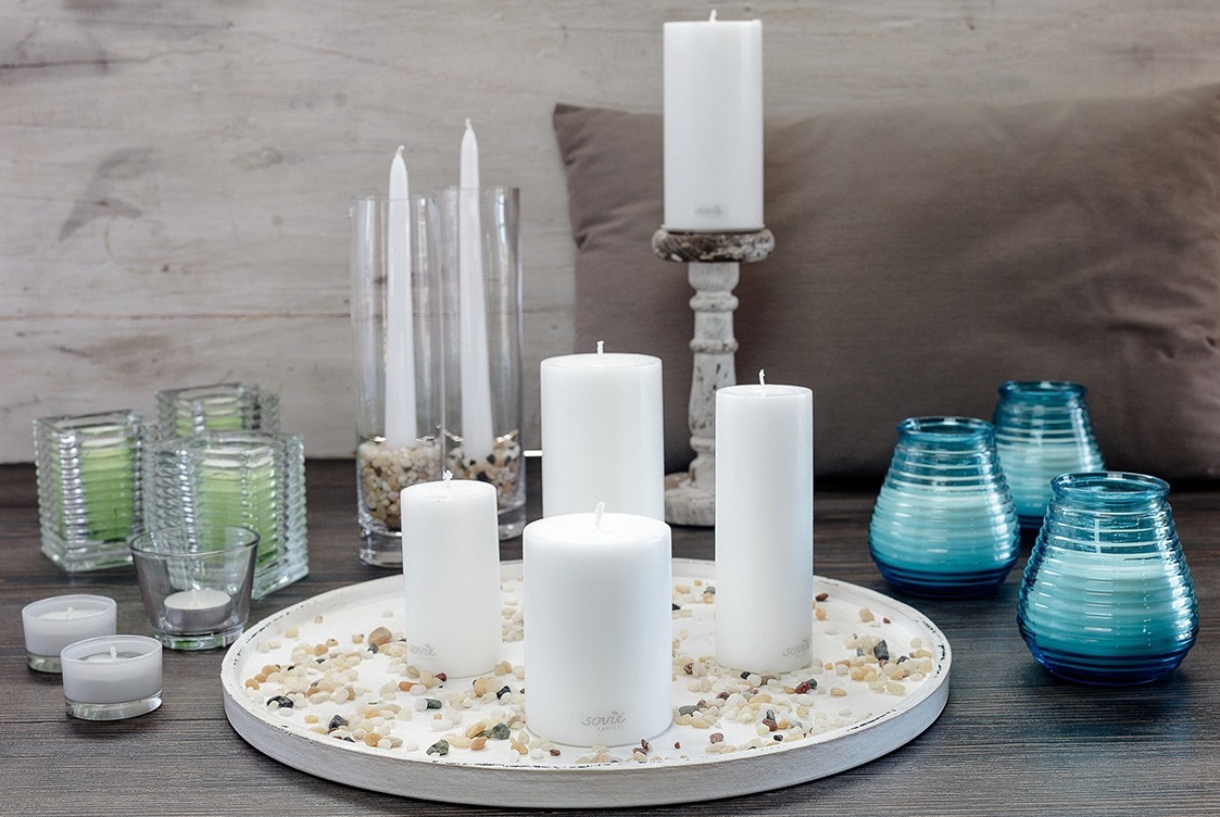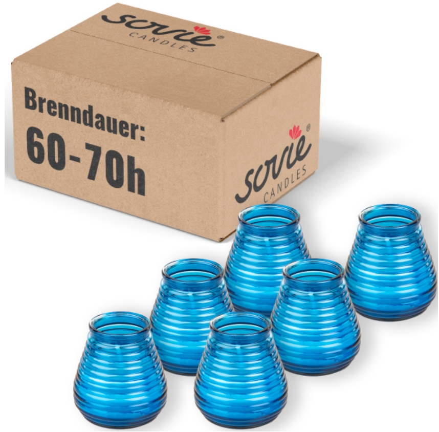 Elegantný sklenený svietnik s Ø 95 x 100 mm. Doba horenia je 60-70 hodín. Po vyhorení sa dá vložiť čajová sviečka alebo náplň Sovie. 6 ks v balení. MOC je za 1 kus.