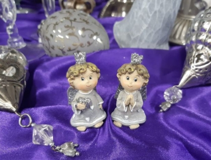 Set dvoch maličkých anjelikov 33x65 mm, postriebrených šedých.