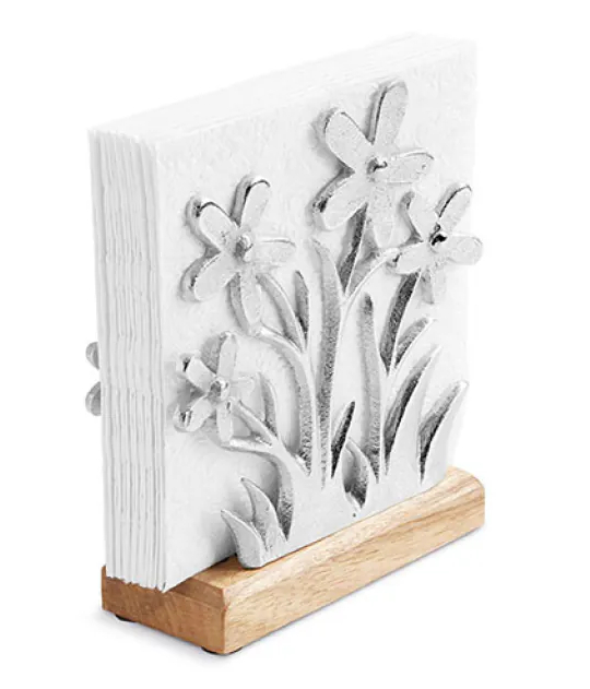 Stojanček - zásobník na servítky z dreva a kovu 16x6x18,5 cm. Kombinácia kovu a dreva. MOC je za 1 kus.