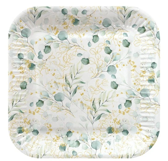 Krásne štvorcové papierové taniere s 23x23 cm na bežné použitie s potravinami. MOC je za 1 balenie = 8 kusov.