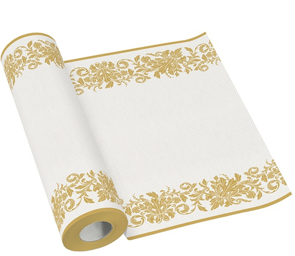 Luxusná šerpa na stôl z Airlaid = netkaná náhrada textilu. Dĺžka 24 m, šírka 40 cm. MOC je za 1 kus. Vhodná na slávnostný a svadobný stôl, 1. sv. prijímanie, krst, či birmovku.