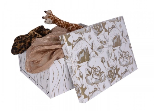 Praktické pevné skrinky s viečkami vyrobené z odolnej 100% recyklovanej lepenky úhľadne uložia oblečenie alebo doplnky. Dokončené bočnými úchytkami z PVC na uľahčenie pohybu, sú zvýraznené romantickým vzorom, ktorý dotvára všetky nevyhnutné detaily pre nové usporiadanie šatníka ... s nádychom kreativity! Krabica je vyrobená výhradne v Taliansku a vyrobená z odolnej lepenky, ktorá umožňuje čistenie pomocou vlhkej handričky. Sú navrhnuté tak, aby sa vďaka rôznym dostupným veľkostiam prispôsobili každému typu šatníka, a sú užitočné na ochranu každého druhu odevu pred prachom, špinou a roztočmi.