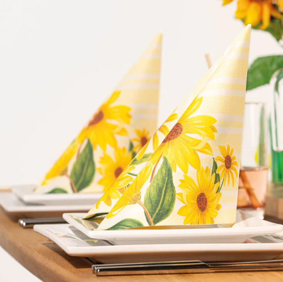Luxusné servítky so slnečnicami z Airlaid / Linclass - netkaný textil 40x40 cm / po rozložení / = dokonalá náhrada textilných obrúskov. MOC je za 1 ks. 1 balíček = 50 ks. 1 kartón = 6 balíčkov = 300 ks.