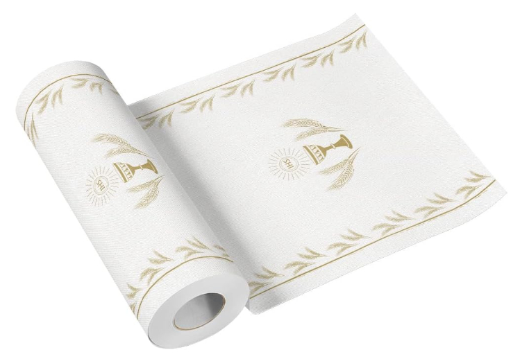 Luxusná šerpa na stôl z Airlaid = netkaná náhrada textilu. Dĺžka 24 m, šírka 40 cm. MOC je za 1 kus. Vhodná na slávnostný stôl a 1. sv. prijímanie, krst, či birmovku.