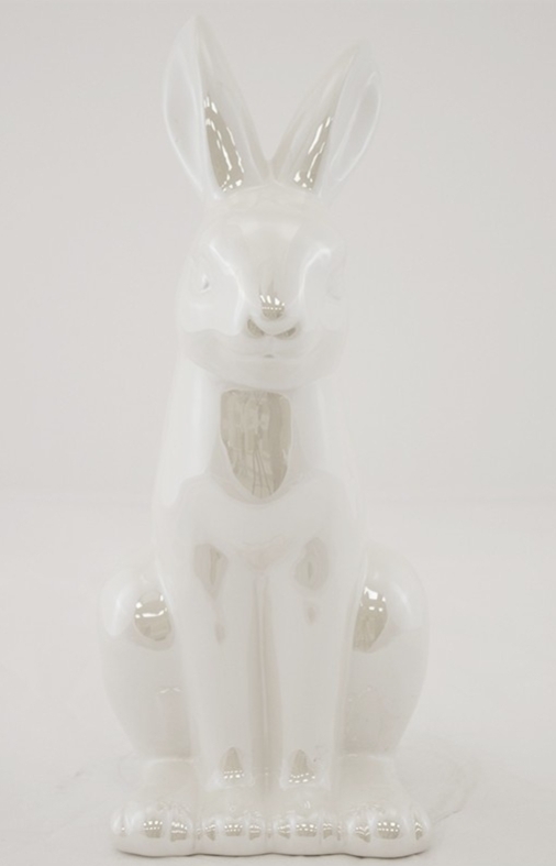 Exkluzívny perleťový zajac s výškou 28 cm a šírkou 13 cm.