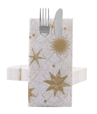 Luxusné púzdra - príborníky na príbor 40 x 40 z Linclass - Airlaid = moderná náhrada textilu. Je to vlastne obrúsok preložený na polovicu s otvorom na príbor. MOC je za jedno balenie = 12 ks.
