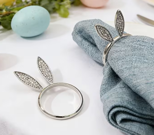 Prsteň na servítky 5,8 x 3,3 cm s veľkonočnými zajačími ušami, kovové držiaky na servítky, vhodné na narodeninové oslavy, veľkonočné banketové stolové dekorácie. MOC j za 1 kus.
