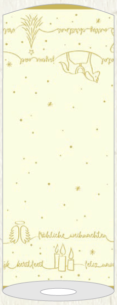 Vianočná luxusná šerpa 40 cm x 24 m z Airlaid / Linclass = netkaný textil = moderná papierová náhrada textilu. MOC je za 1 ks. Každých 120 cm je nenápadne perforovaná, čo vám dá možnosť tieto časti odtrhnúť a nastierať "tvárou k tvár" - oproti sebe. 1 kartón = 4 ks.