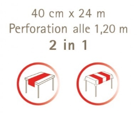 Luxusná šerpa z Airlaid - Linclass - netkaný textil 24 m x 40 cm. Nenápadne perforovaná každých 120 cm. MOC je za 1 kotúč. V 1 kartóne = 4 ks.
