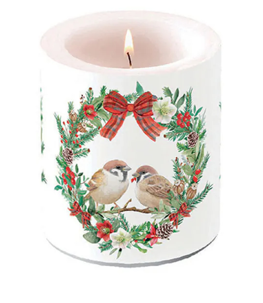 Vianočná sviečka stredne veľká. Ø 10 cm a výška 10 cm, balená v celofáne. Doba horenia je 45 hodín.
