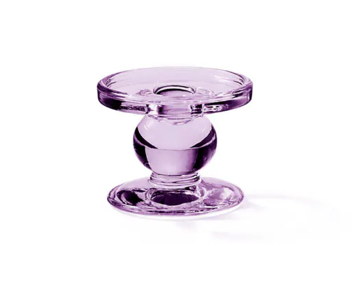 Sklenený hrubostenný obojstranný svietnik s priemerom 9 cm a výškou 7 cm. Z jednej strany môžete elegantne položiť veľkú sviečku - valec a z druhej je otvor na kónickú sviečku.