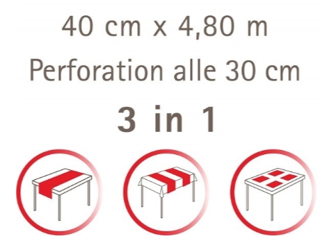 3 v 1 = 1.šerpa na stôl . 2. V dĺžke 1,2 ako prestieranie tvárou v tvár. 3. ako anglické prestieranie 40x30 cm.