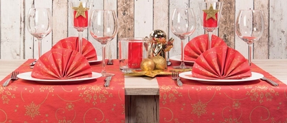 Luxusná vianočná šerpa 40 cm x 24 m z Airlaid / Linclass = netkaný textil = moderná náhrada textilu. MOC je za 1 ks. Každých 120 cm je nenápadne perforovaná, čo vám dá možnosť tieto časti odtrhnúť a nastierať "tvárou k tvár" - oproti sebe. 1 kartón = 4 ks.