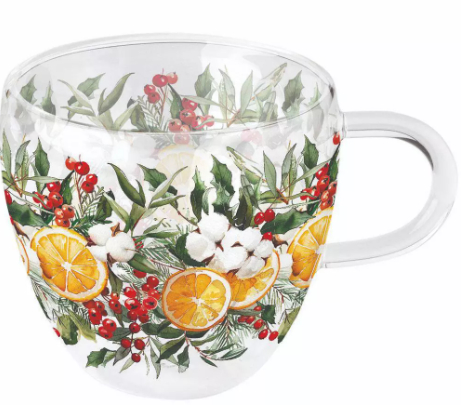 Vianočná luxusná šálka z dvojitého skla 0,25 l s Ø 10 - V 9,5 cm.